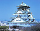 大阪城重建於二十世紀,白牆青綠屋瓦,裝飾著黑邊和金箔,非常的莊嚴穩重。八層樓高的建築,展示著豐臣秀吉的相關歷史文件,以及大阪城各時期的復原模型。從八樓的展望台往下看,整個大阪城一覽無遺,遊客也可以三百六十度環繞眺望大阪全部市區,大川沿岸的櫻景和河上橋埏也盡收眼底。
