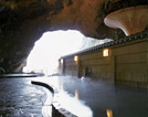 勝浦溫泉濱臨太平洋黑潮,因此一直以來就是日本最重要的三大黑鮪魚產地之一,位於勝浦漁港周邊浦島飯店的「忘歸洞」,是日本非常有名的海濱溫泉泡湯地。忘歸洞的湯池是一個天然石灰岩海蝕洞,緊鄰太平洋,泡在裡頭除了暖暖湯香外,還能一邊聽著太平洋的波濤聲,如果時間對了,還能一邊看夕陽。