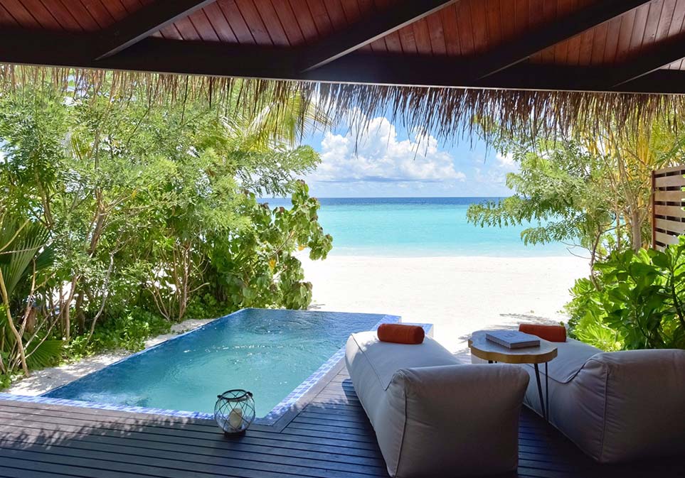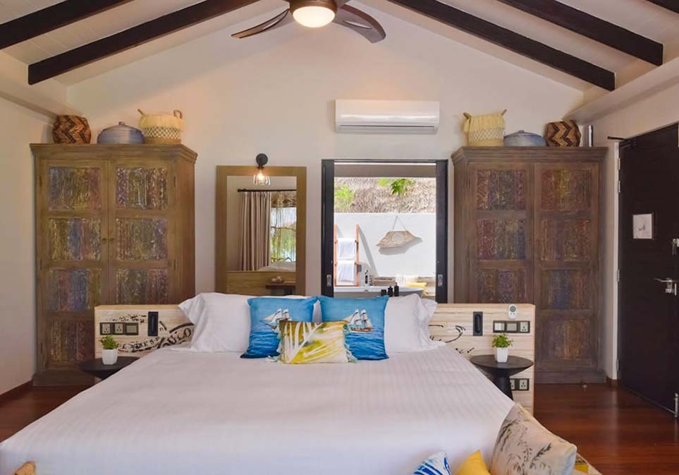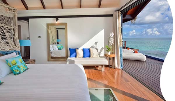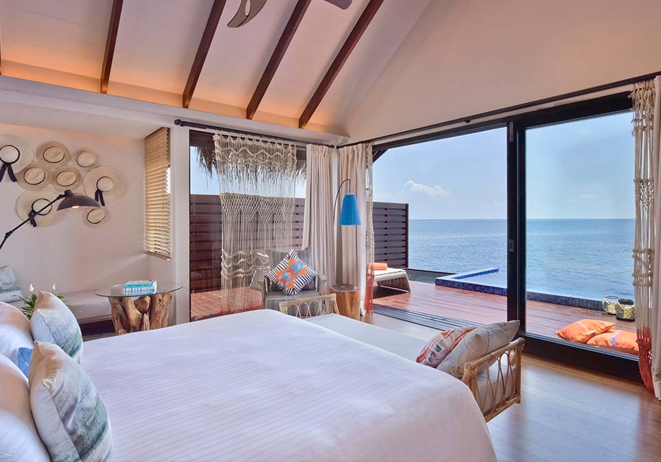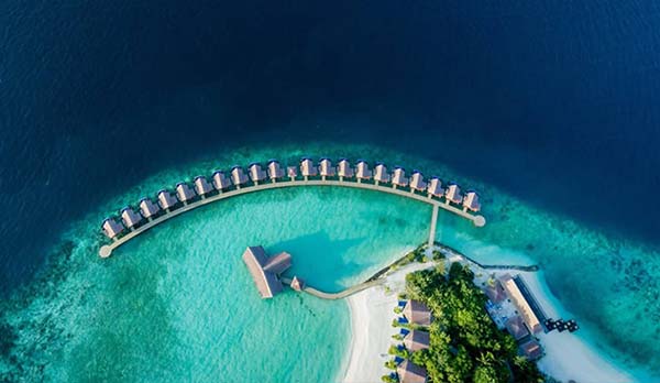 度假村由全球享譽盛名的酒店設計事務所 Hirsch Bedner Associates所操刀設計,精緻細膩的建築外觀、新潮先進的室內裝飾和棕櫚鑲邊的挑高天花板,別有一番品味格調。沿襲了馬爾地夫傳統木器和藤藝的美感,精妙結合現代元素,凸顯質樸魅力風情與靜謐幽雅的氛圍。中性色調、自然美感和寬敞的空間,將海濱和水上別墅、餐廳以及休閒空間與寧靜悠然的別致環境巧妙結合。