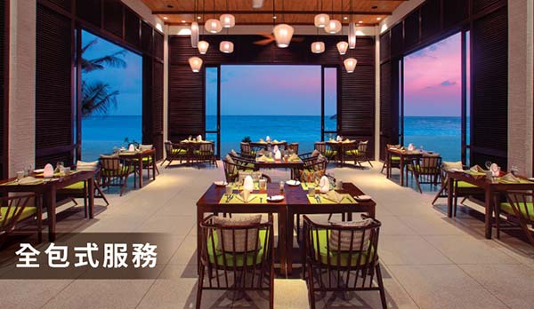 以全包式服務為主,提供早午晚三餐豐富美食、酒吧無限量供應各種品牌烈酒、啤酒和各式特色雞尾酒等等…讓貴賓從早到晚吃喝不用愁。其一餐廳— Simple Veg為馬爾地夫少數素食餐廳,提供變化萬千的精緻素食。