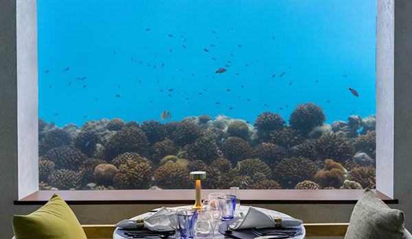 島上擁有馬爾地夫罕見的海底餐廳,享受在海平面6.8尺下品嘗美食,欣賞引人入勝的海底世界,感受被魚群環繞用餐的奇妙體驗。開放式的廚房,也能親眼目睹廚師的精湛手藝。