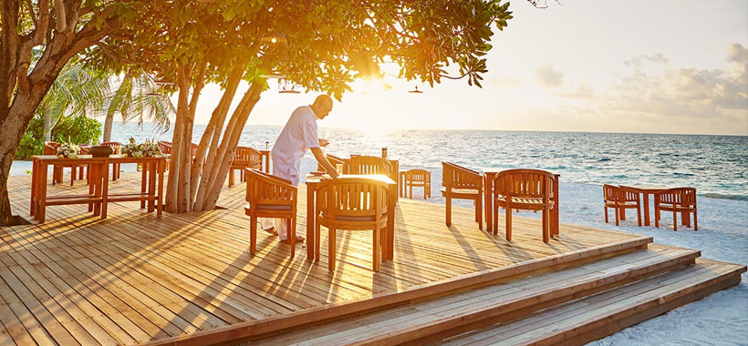 品嚐道地島嶼生活的精髓,提供自助式的美味佳餚,還可以將腳埋進沙中,傍晚時分,不妨一起欣賞馬爾地夫原住民的風土民情吧!
