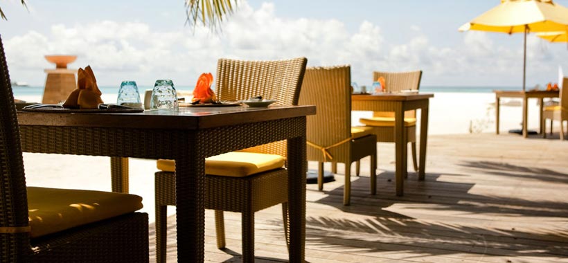 位於離島水上屋的主餐廳 Azzurro,提供豐富的義式料理,於本島距離約10分鐘船程,也是提供給住宿於水上屋的客人使用。