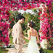 穿越綠意盎然的蔗田,美之海遼闊的碧海藍天映入眼簾,三角形挑高建築及溫潤質感原木,燦爛奪目的琉球玻璃反射溫暖陽光,在美麗海景與幸福光輝下實現夢想中的婚禮。