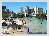 【南岸河濱公園】布里斯本的南岸河濱公園,是1988年萬國博覽會的會場,公園裡除了有廣大的草地與樹林之外,還有烤肉區、人工海灘戲水區,讓大人小孩都玩得很開心。在這可以悠閒的野餐或烤肉或選擇在周圍的咖啡店或餐廳享用一頓美食。