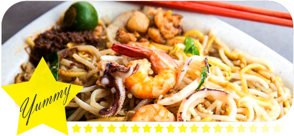 新加坡超人氣平民小吃,許多人到新馬一帶旅遊,一定要到街上小店尋覓的美食,炒麵條配上大尾蝦肉,呈現濃濃南洋風味。
