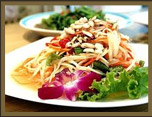 泰國的國民美食-涼拌青木瓜,隨處都有它的蹤跡。一絲絲的青木瓜,淋上調配過的橘色透明醬汁,酸酸辣辣;一口入喉,煩躁的熱氣全消。成為泰式料理中,必點的菜色。