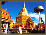 座落清邁海拔1,035公尺的素貼山上,寺內金碧輝煌、雄偉的雕刻,令人目不轉睛。充滿傳奇典故的雙龍寺,傳說白象帶著佛舍利,來到此處趴下;人們認為是福地,選擇在此地建造寺廟供奉佛舍利。