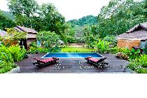 搭乘長尾船才能到達, 舉目所望全是青山綠水,鄰近有蓄牧農場,徜徉於大自然之中。當夜幕低垂時,蟲鳴、河水的流動聲伴隨著入眠。天剛微明,鳥鳴喚起我們,早已模糊的鄉村記憶。