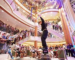 郵輪上最為優雅而充滿活力的核心地帶,超現代大膽的流線設計,令人眼睛一亮。挑高四樓的中庭,提供開闊的空間感。這裡還是舉行重大慶典的場所,包括船長歡迎酒會及香檳瀑布惜別晚會。平時也常在此辦些像是調雞尾酒、蔬果雕刻表演等小型活動。。