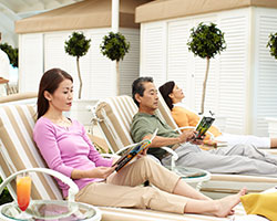 位於船尾處,主要提供各式身體/臉部的按摩、護膚、美白、排毒等調理療程的服務,將所有的疲累與煩惱全都拋到腦後,讓您在舒適的環境中盡情放鬆。