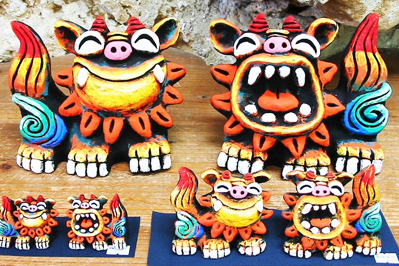 沖繩最常看見的就是笑口常開的風獅爺了,出現在屋頂上有招福避邪的作用,還有到處看得到風獅爺的紀念品。