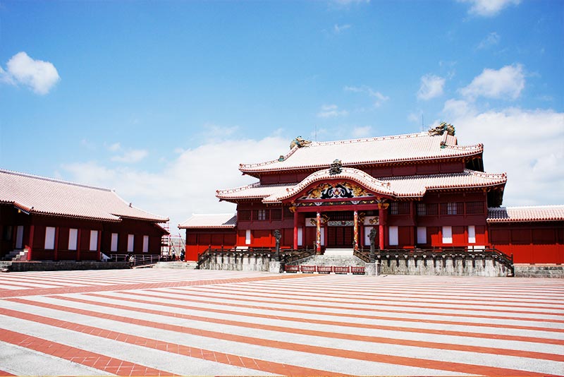 建造於14世紀末的首里城,為琉球歷代國王居住的城都,同時也是琉球王國的政治中心,2000年被聯合國教科文組織登錄為日本第11座世界文化遺產。古色古香的城牆及清幽的庭園造景,讓人彷彿走進時光的隧道,感受昔日琉球文化與優美景色,從位在丘陵上的城牆望出,中國東海、那霸市區盡收眼底。