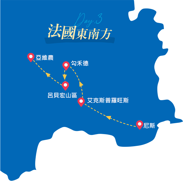 法國藝術與歷史文化之城,城市內存有完整城牆和歷史建築。特別安排參觀亞維農主教宮燈光節表演,每年8-9月晚上,欣賞絢爛奪目的華麗燈光秀。