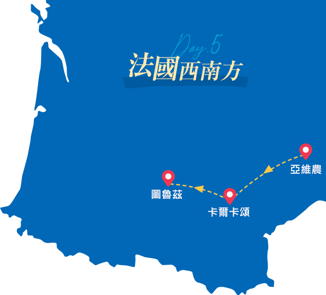 以保有歐洲最大城堡而馳名,為中世紀擁有雙城牆環繞的雄偉古城,卡爾卡頌古堡是當年電影「羅賓漢」場景,還可至老城區逛街,充滿趣味!