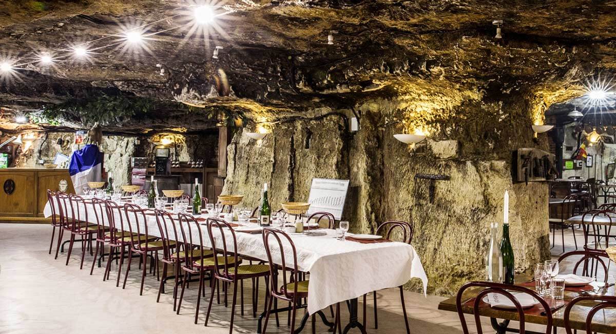 在羅亞爾河區,許多城堡多沿著羅亞爾河及其支流而建,部份城堡及城鎮建在稍高的台地上,而底下則有些住家或餐廳則往山壁及地裡鑿,而形成了地窖餐廳。La Cave aux Fouées,有著道地且美味的料理,還可以觀看廚師使用大爐子製作窯烤麵包,快來享受一個難忘的山洞用餐體驗。※圖片僅供參考