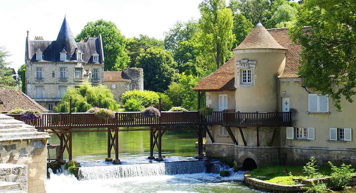 米其林評鑑百大美村之列的莫雷小鎮Moret sur Loing,中世紀遺留下來的城門、建造的房子及石板路,讓小鎮彷彿停留在昔日倒流時光的氛圍,城牆門外的河流襯托著莫雷小鎮最迷人的地方。橋邊的景象,柳樹、紅花、流水、小村莊讓人有到悠閒南法的浪漫氛圍。