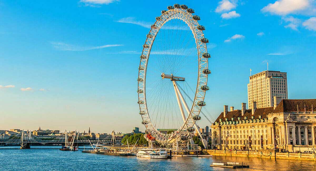 位於泰晤士河畔的「倫敦眼 London Eye」是世界上最大等級的摩天輪,是英國為了迎接千禧年而建的建築,無疑已成為泰晤士河畔最引人注目的地標,整座摩天輪共有32個造型前衛的玻璃包廂,遊客可從包廂內360度俯瞰倫敦市區街景,將大鵬鐘、西敏寺等著名景點映入眼簾,以不同的角度欣賞倫敦。