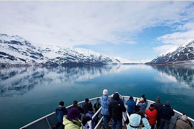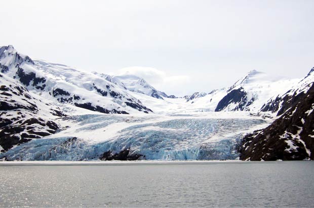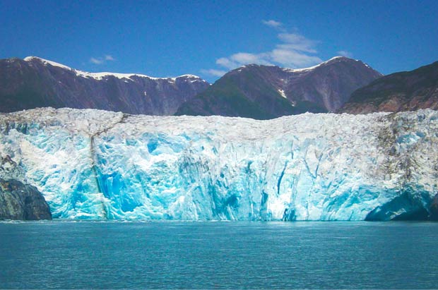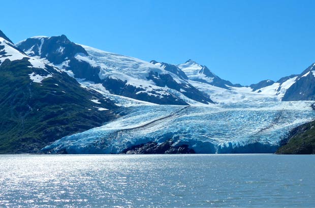 位於美景如畫的崔西灣(Tracy Arm)峽灣中,如雙手臂環繞在阿拉斯加荒原上,延伸了50公里,並在數千英呎陡峭的峽谷裡蜿蜒著。搭乘遊輪在環山綠水中緩緩前進,即可看到一大片幾乎跟山一樣巨大的白色景觀。