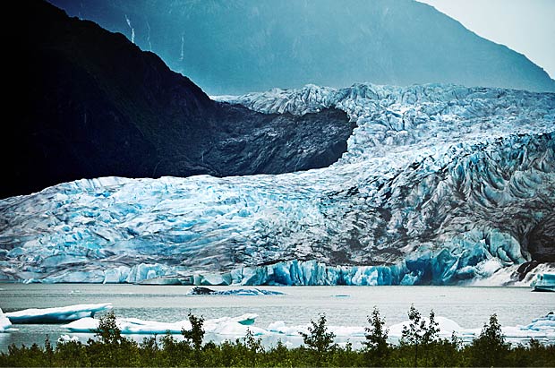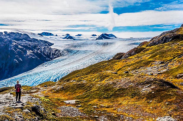 阿拉斯加有超過10萬條的冰河,壯麗奇景包括流入海中的「潮水冰河Tidewater Glaciers」、懸掛在山側的「懸冰河Hanging Glaciers」、大片冰河流出的「冰原冰河Icefield」、冰河流入山谷間,狀似一條長舌頭「山谷冰河Valley Glaciers」等。但全球暖化的陰影下,阿拉斯加的冰河隨著氣溫上升不斷持續倒退、變小、縮短,甚至消失在世人眼中...