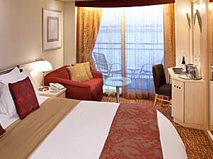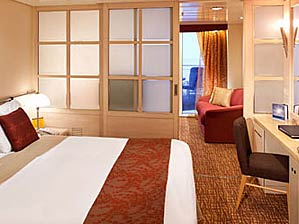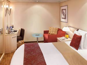 所有的艙房都有可以合併後成為加大尺寸的雙人床,並有電視、電話、收音機、吹風機、梳妝檯與全套衛浴設備。內艙艙房是指位於甲板內側的一般艙房;海景艙房均有觀景窗可欣賞海上美景;陽臺艙艙房則擁有個人私密的專屬陽臺,提供豪華舒適的寬敞空間。