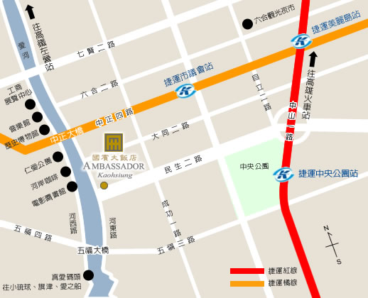 高雄國賓大飯店為全台首波通過觀光局五星評鑑之飯店,座落在有「台灣塞納河」之稱的愛河畔,優越的地理環境讓旅客無論是漫步兩岸親水步道、置身悠閒的露天咖啡座、欣賞炫麗的光雕橋或搭乘愛之船遊河巡禮,皆可近距離體驗令人驚艷的河岸風光。飯店內寬敞挑高的大廳、金箔圓頂的迴廊、華麗古典的藝術品,揉合人文與歷史特質,營造出新歐式古典主義的獨特風格,提供東西文化交流的親切待客之道。多達453間的客房,以明亮色彩及寬敞空間為設計主軸,搭配新穎現代化設備,打造國際觀光飯店的頂級質感與居家思維的恬靜溫馨。館內6個餐廳分別提供中西式精緻料理,19個多功能宴會廳展現富麗堂皇的宏偉氣勢;另設有戶外游泳池、健身房、三溫暖、商務中心及禮品店等應有盡有的服務設施,充分滿足商務或渡假行程之多元性。