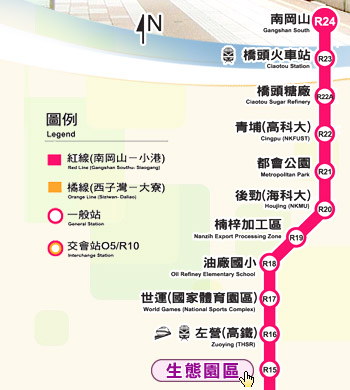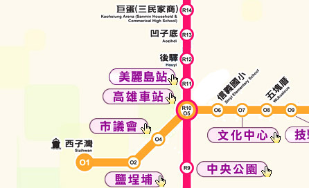 高雄捷運橘/紅線的交會站,位於中正三路及中山一路口。中山路婚紗街、中正路禮餅街、六合夜市、南華夜市都是本站生活圈。