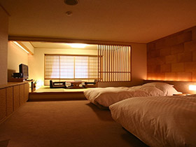 - 定山溪溫泉-花楓葉 (別館)Shikanoyu Hanamoniji 寛廣的客房,和有觀景很好的最上層大浴池是本旅館的特色。還可優雅地品嘗應時懷石料理等。