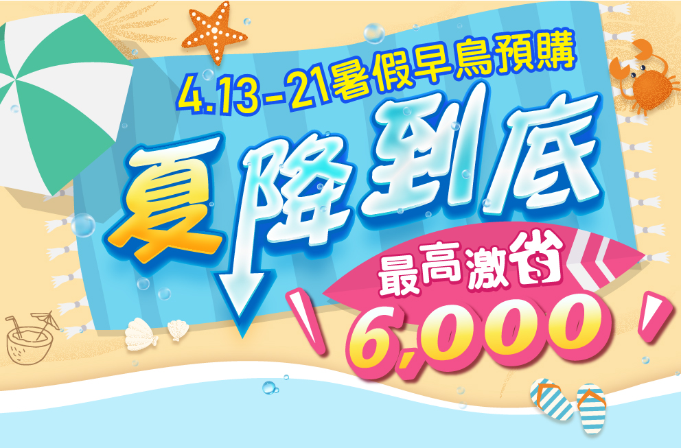 限出發日:6/28,4/21前報名付訂,第二人省$6,000