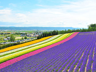 在這一片遼闊的丘陵無限延伸的花海,可以盡情的欣賞這宛如七彩花地毯的景色,這美麗的風景就在美瑛地區的「四季彩之丘」。 最大的魅力就是一望無際的花海!每年夏季有各種不同的鮮花競相開放,可說是夏日賞花人潮最高峰。
