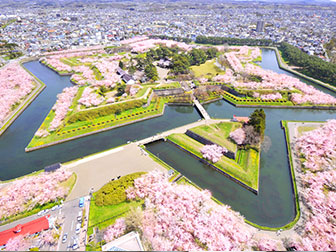五稜郭是除了函館百萬夜景之外另一個必去的景點。五角形的星形外觀是其特色,每年春天1,660株多的櫻花同時盛開,是北海道內屈指可數的櫻花名勝之地。