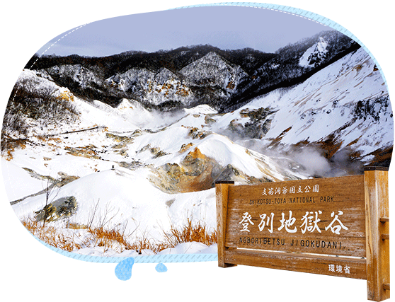 登別溫泉地獄谷是火山噴發後所殘留下的火口痕跡,此地四處可見由赤紅色的岩石及黃灰色的岩丘,熱騰騰的水自噴氣孔及湧泉口不斷湧出沸騰,彷彿地獄,因而名為地獄谷。