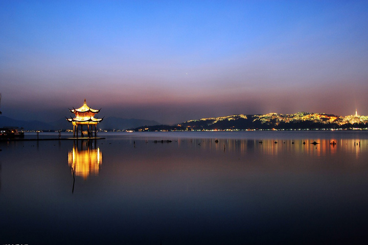浙江三大名湖之一,以煙雨朦朧的湖光景色而著稱。南湖上有兩座小島,一座是“小流洲”,島上建有煙雨樓,另一座島上建有侖聖祠。小瀛洲柳樹繞堤,曲徑通幽,久負盛名的煙雨樓屹立於綠蔭叢中。