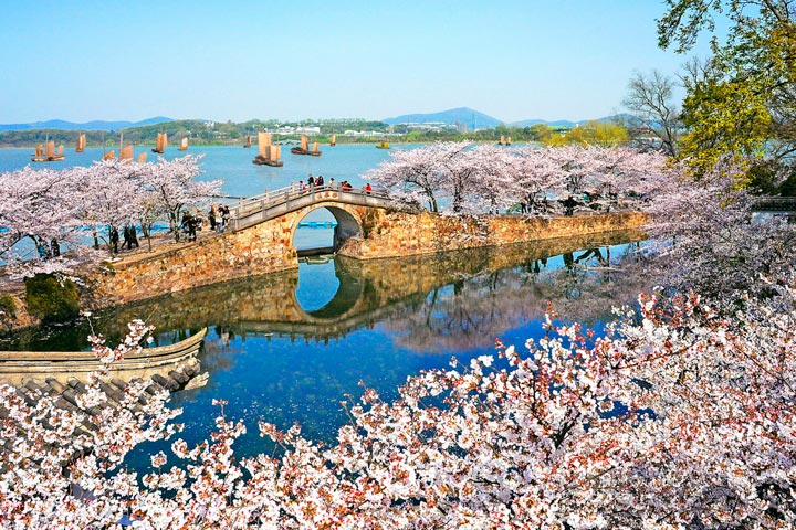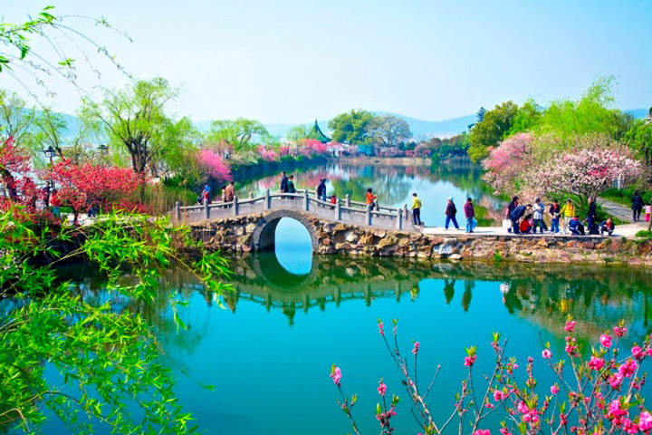 黿頭渚是太湖北部的一處半島,形似浮黿翹首(黿:鱉的一種)而得名。可以遊覽江南最龐大的園林群,或是坐遊船感受太湖煙波浩渺、登上太湖仙島一探秘境,體會郭沫若先生所讚“太湖佳絕處、畢竟黿頭渚”的意境。