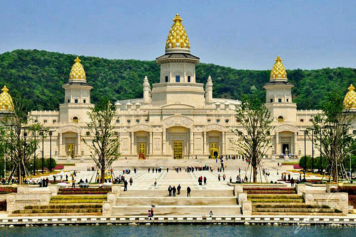 靈山梵宮坐落於煙波浩淼的太湖之濱,鐘靈毓秀的靈山腳下,氣勢恢宏的建築與寶相莊嚴的靈山大佛比鄰而立。
