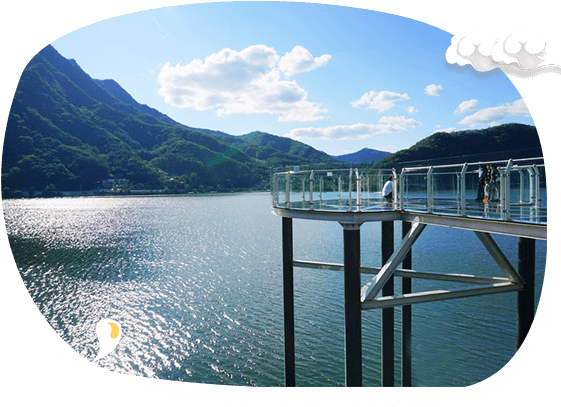 Skywalk位於距離水面高約12公尺處,為圓形的透明玻璃平臺,走在此就像是走在空中又會掉入水中一樣,給人一種驚險刺激的感覺。其位於腳踏車道的中間地段,不僅是景色優美的觀景臺,更是適合拍照攝影的好去處。(圖源:韓國觀光公社)