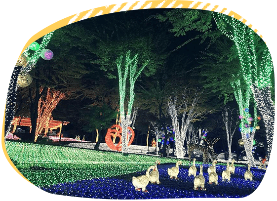 由大邱頗有名氣的星光村縮小版,將同樣浪漫的藝術燈飾造景搬至安山。總共佔地三千多坪,利用不同顏色的燈光來呈現出四個季節所相對應的氛圍,由10萬顆燈泡點亮夜空,共計500多件作品,粉色系代表生意盎然的春天、綠色代表生動的夏天、橘紅色代表楓紅的秋天以及白色代表冬季浪漫的雪白世界。(圖源:韓國觀光公社)