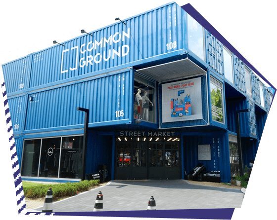 新一代創意設計建築最新潮流地標COMMON GROUND。利用200個藍色貨櫃建成,有70間店舖及餐廳分布於購物區內,具有一定的規模。品牌方面皆受年輕人喜愛成為新興亮點。(圖源:韓國觀光公社)