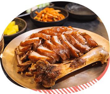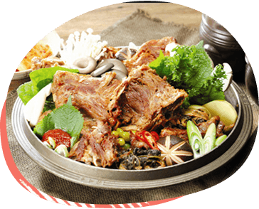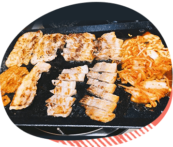 烤五花肉是韓國人外食、聚餐的第一飲食選擇。五花肉由於肥瘦三層相間而得名,與其他肉類比較,富含維他命B、蛋白質、鈣質、鐵質等各種礦物質, 還能品嚐到利用8種對人體有益的醬料醃製而成的肉類,深受旅客的歡迎。