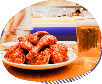 是一種韓國風味的炸雞,既可以是快餐店、餐廳和酒吧的主菜,也可以被當做零食。口味很多,有原味、香辣醬料味、醬油味、大蒜味、和蜂蜜等。隨著韓劇《來自星星的你》興起風潮,炸雞和啤酒成為最新流行語,到韓國品嚐道地炸雞和啤酒也被遊客們列入必食清單中。