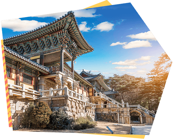 建於新羅時代的公元751,雖歷經1500年歲月,卻能顯示出其精巧的石雕工藝,迴廊與大雄殿以鮮明的丹青塗飾,安置釋迦牟尼像的寶殿內部色彩華麗,寶塔雕刻優雅美觀,眾多的國寶與文化遺產都顯示著當時新羅文化的登峰造極。
