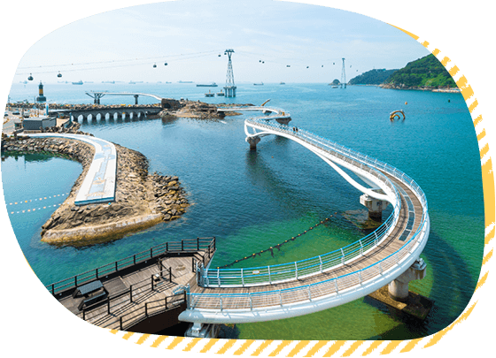 韓國最長的海上散步道,部分地板底部更採透明強化玻璃設計,為其最大特色。透過透明玻璃向下看,可以看到蕩漾的海水,更可體驗彷彿走在海面上的刺激感。