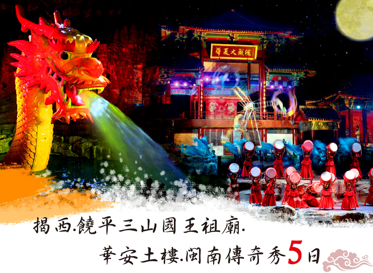 天|漳州 → 華安土樓〔二宜樓、東陽樓、南陽樓(含電瓶車)〕 → 廈門〔老院子+閩南傳奇秀〕