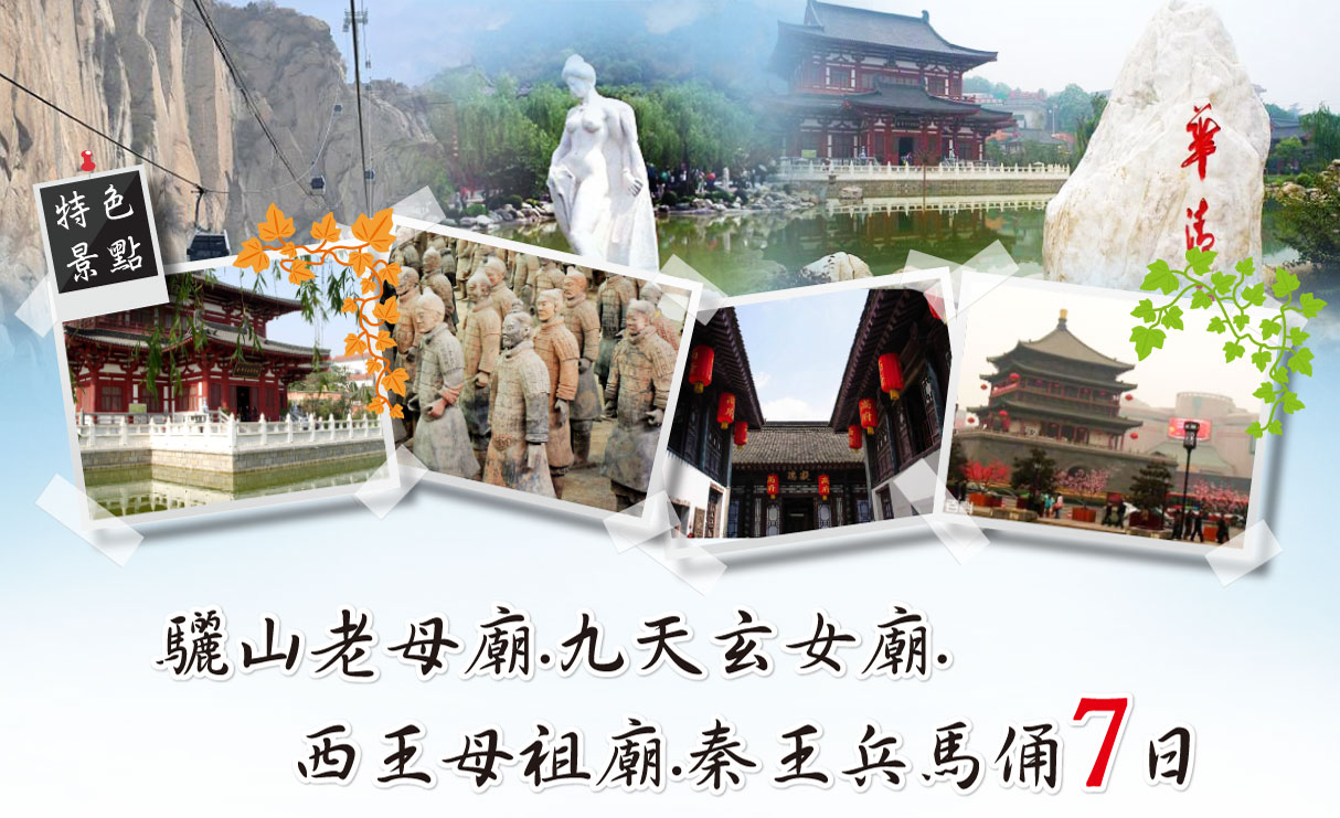 天|西安 → 臨潼驪山 → 驪山老母廟 → 華清池 → 秦陵兵馬俑+秦始皇陵(含電瓶車)→ 華山
