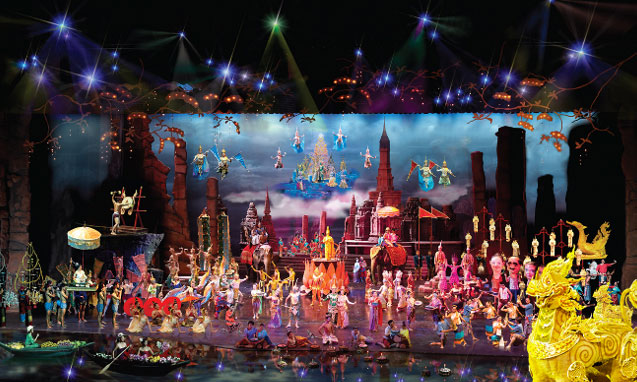 目前泰國境內最宏偉規模最大的劇院,共有二千個座位,此劇場採用了混合現代和經典特技元素加強劇目的感染力,並是一部泰國多姿多彩傳統文化和遺產的演藝劇作,以華麗壯觀的表演襯托在一幕幕動人的故事中,投入其充滿創意及超乎幻想的演出!