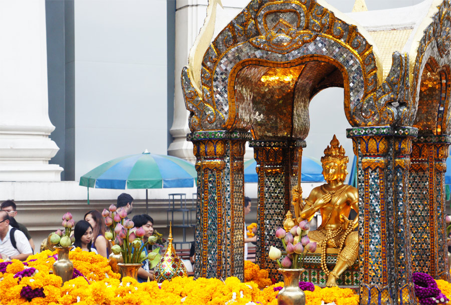 是泰國香火最鼎盛的膜拜據點之一,深受港台明星的追捧。在泰國及東南亞,四面佛被認為是仁慈無比的神祗,所以在拜佛之前要戒葷吃素,以表示對動物的仁愛,信眾在日常生活中禁止虐待動物。供奉的神像高約4公尺,前後左右有四副面孔,分別代表慈、悲、喜、舍四種梵心,凡是祈求升天者必須勤修這四種功德。神像擺放在工藝精細的花崗岩神龕內,正襟危坐,全身金碧輝煌,四面都是同一面孔、同一姿態。由於它的靈驗,為眾人稱道,因此這裡的香火非常旺盛。