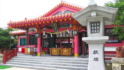 建於公元15世紀中葉,是沖繩著名八大神社之一,建在可眺望海上風光珊瑚礁懸崖上,神社的紅瓦屋頂具有強烈沖繩文化色彩,是每年正月沖繩香客參拜最多的神社,重大祭典也多在此舉行。