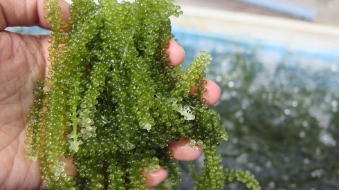 使用久米島最天然的海洋深層水養殖的海葡萄,從種子養成可出廠狀態約需1個月左右的時間,除了使用深層水外還需要隨時調整溫度和日光,採收時也由工作人員仔細謹慎挑選,才可培育出美味的海葡萄。