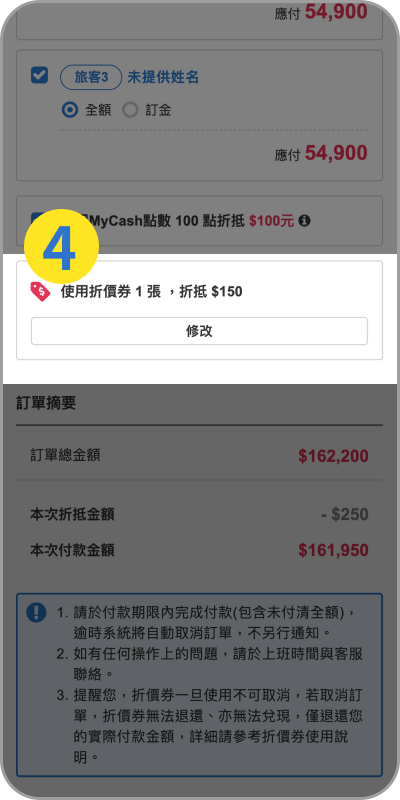 折抵完成,系統顯示折扣後金額