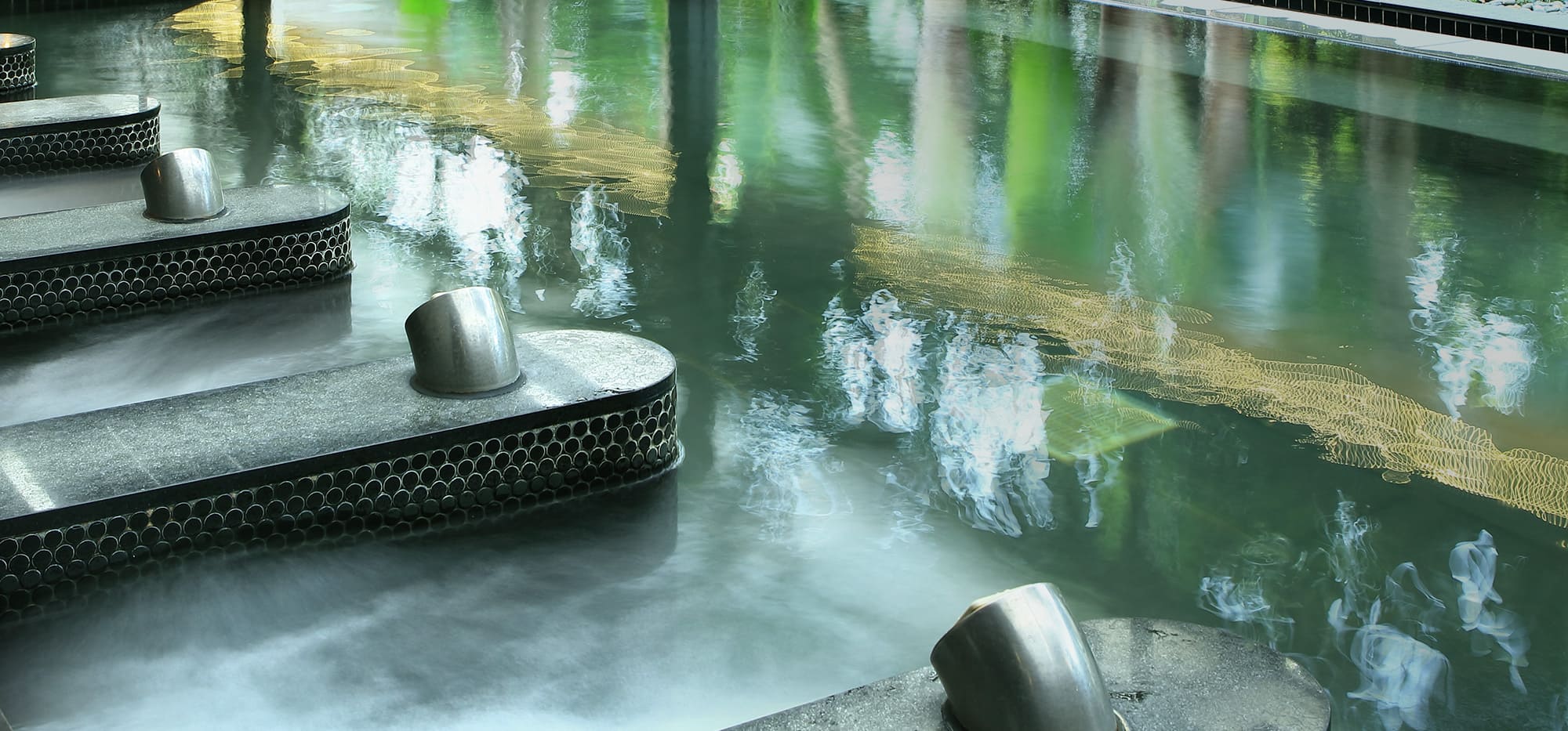 底部鋪了黑色大理石,慵懶的睡蓮點綴著水面,將水、天、地化為一線間。